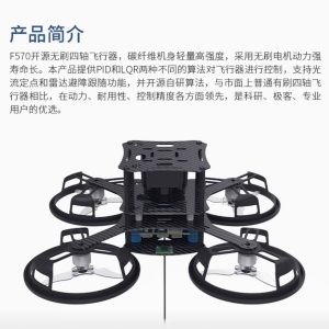 Product Name | Product Model | Dimensions | Weight | Payload | Frame Material | Motor Model | External Battery | Charger | Program Download Interface | Control Algorithm | Simulink Simulation | Flight Controller Chip | Control Method | Flight Duration | Altitude Hold Flight | Point-to-Point Flight | Follow/Obstacle Avoidance Function | Battery and Aircraft Power Cable Length | Open Source Brushless Quadcopter | F570 | Without Radar: 217.3*217.3*43.5mm | With Radar: 217.3*217.3*75.5mm | Without Radar: 150g / With Radar: 194g | Without Radar: 100g | With Radar: 50g | Carbon Fiber | 1104 4300KV | 12.6V 4500mAh Safety Battery with Casing Protection (Supports Simultaneous Charging and Use) 3C Certification 12.6V 1.9A Lithium Battery Charger